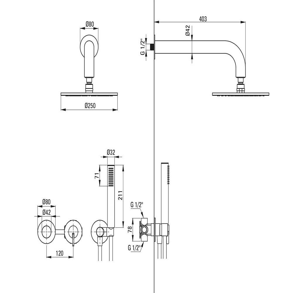 Zestaw prysznicowy podtynkowy SILIA z baterią poziomą i głowicą chrom