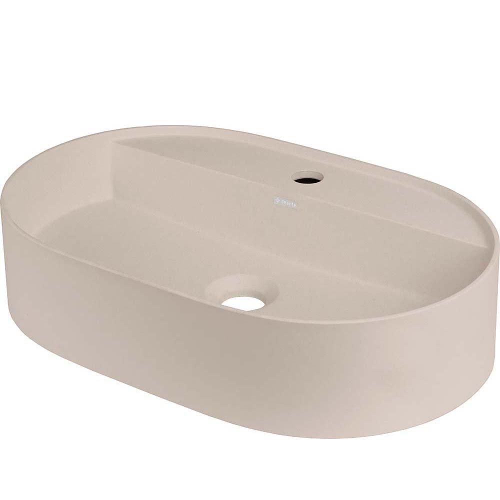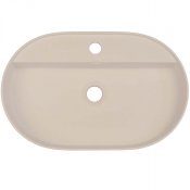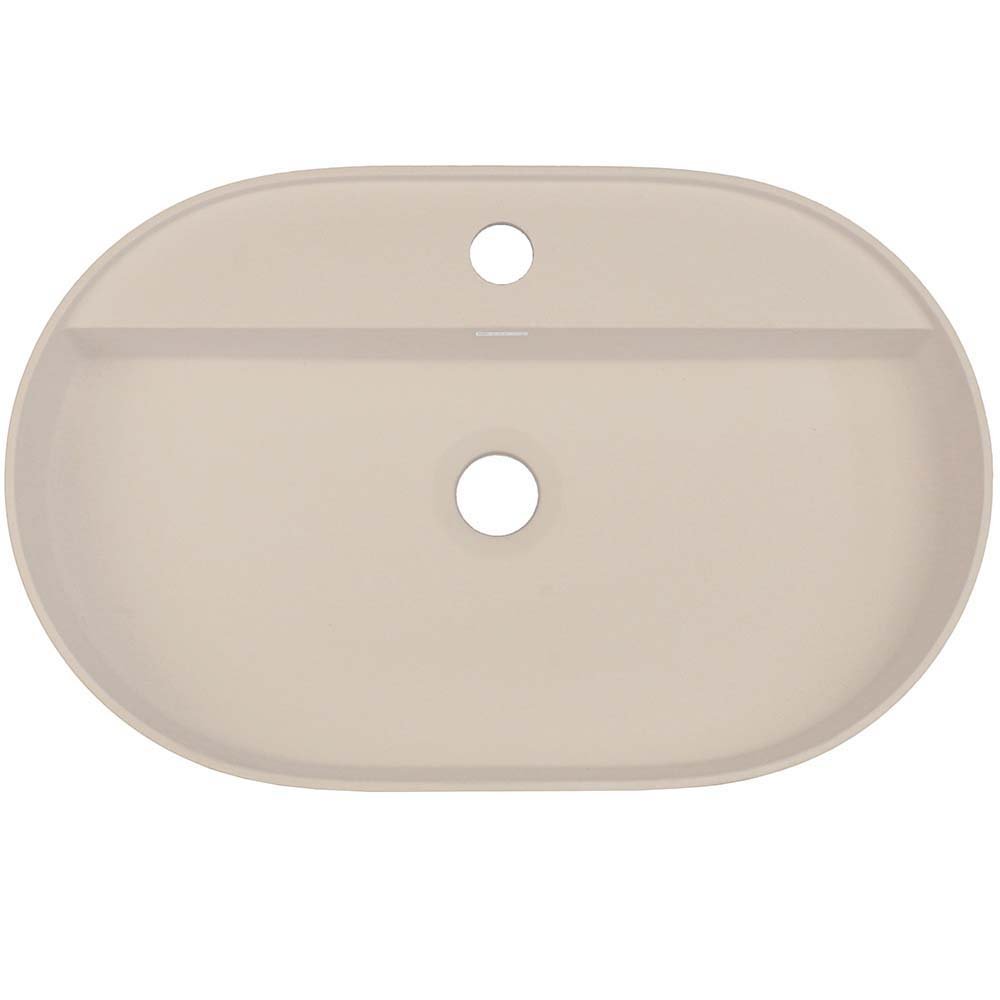 Umywalka nablatowa SILIA z wyspą na baterię granitowa owalna beżowa