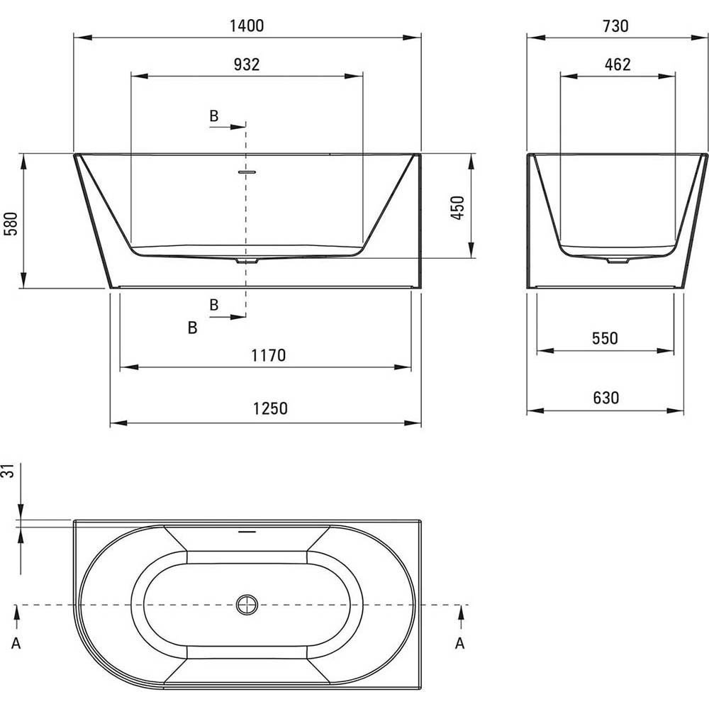 Wanna wolnostojąca SILIA 140 cm prawa