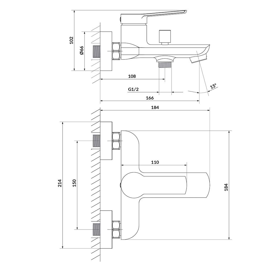 Bateria wannowo-prysznicowa ścienna NATIS jednouchwytowa chrom