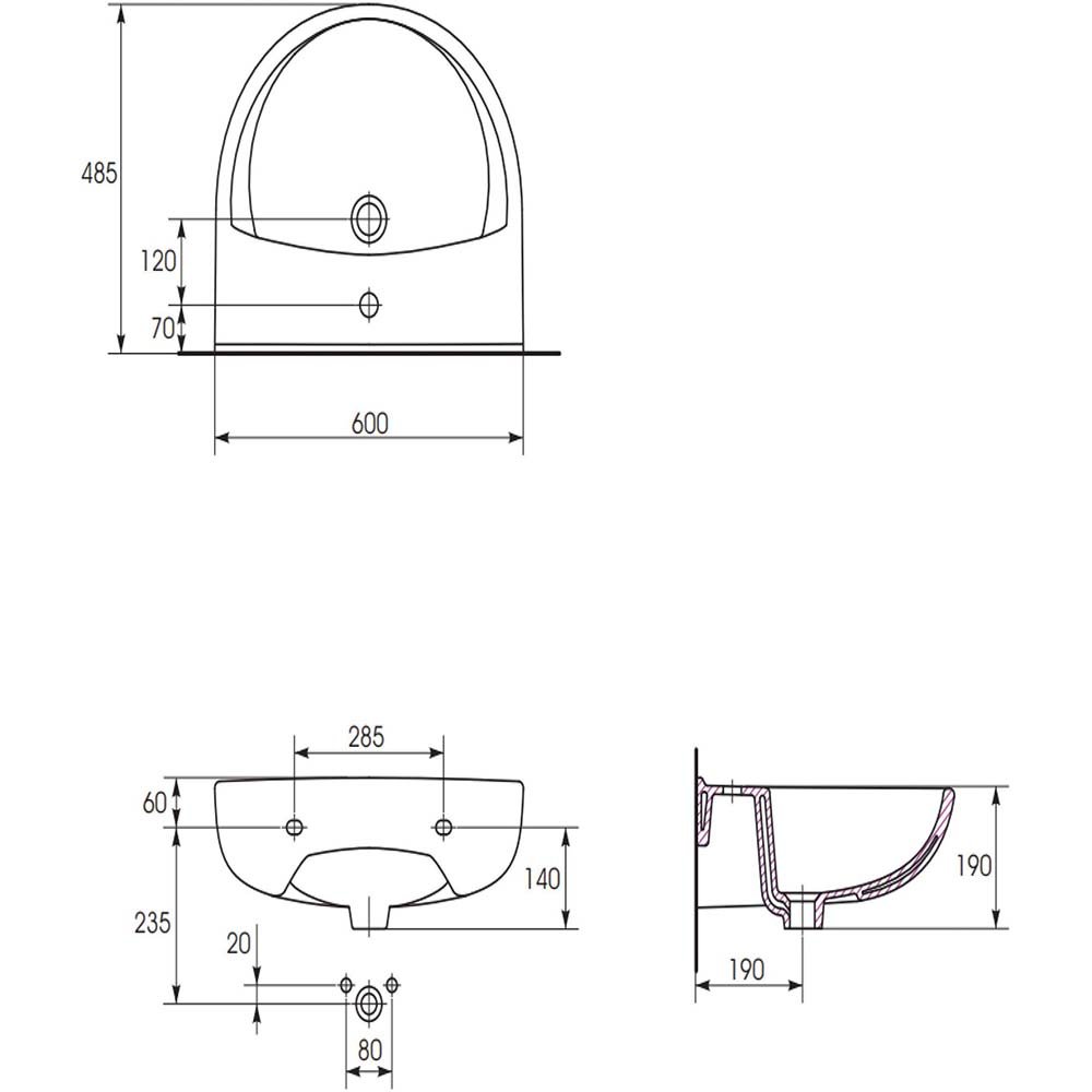 Umywalka ścienna, ceramiczna MARTA. Wymiary: 50x48,5 cm.
