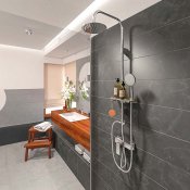 Dopracowane kształty oraz wygoda użytkowania tworzą spójną całość, wpisującą się w najnowsze trendy. Kolekcja pozwoli nam na całkowite wyposażenie łazienki. W ofercie znajdziemy szeroką gamę baterii umywalkowych, wannowych, natryskowych oraz bidetową w dwóch wykończeniach: chromie oraz czerni. Jest to zatem świetna propozycja do stworzenia strefy relaksu we własnym domowym zaciszu. Szeroka oferta strefy kąpielowej pozwoli na dopasowanie modeli względem potrzeb. Uzupełnieniem będzie dobranie z serii zestawu natryskowego na drążku bądź kolumny natryskowej. Ta występuje również w wersji z baterią termostatyczną.
