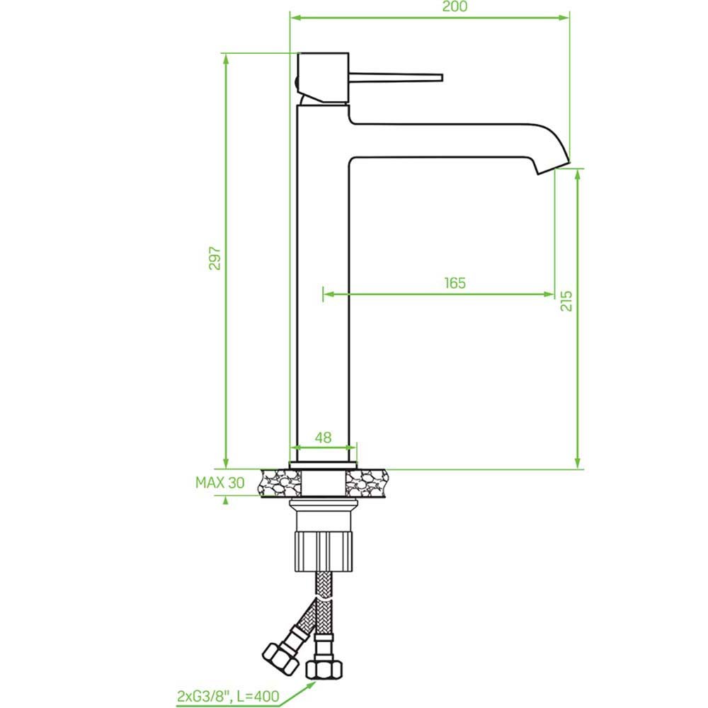 • Zasięg wylewki: 165 mm