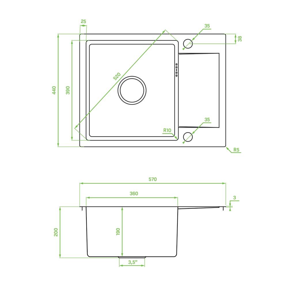 • Długość zlewu w przedziale: 57 cm