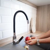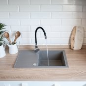 Baterie kuchenne serii Elza marki Kuchinox z elastyczną wylewką należą do rozwiązań efektownych wizualnie, a jednocześnie wyróżniają się dużą praktycznością podczas codziennego użytkowania w kuchni. Seria posiada elastyczne wylewki oraz dostępna jest w wersji sztorcowej stojącej i ściennej. Uniwersalna kolorystyka sprawia, że z łatwością można dobrać ją do każdej stylistyki kuchni, zarówno tej nowoczesnej, jak i utrzymanej w klasycznym tonie. Baterie posiadają chromowe elementy, dzięki czemu możemy dobrać baterię do stalowego zlewozmywaka. Natomiast elastyczne wylewki dostępne są w uniwersalnych kolorach tj. beżowy, szary oraz czarny, dzięki czemu możemy dopasować baterię do zlewozmywaka granitowego. Baterie z elastyczną wylewką łączą w sobie cechy funkcjonalności wraz z estetycznym wyglądem. Największą zaletą elastycznej wylewki jest jej plastyczność, umożliwiająca dowolne jej ustawienie, dzięki czemu możemy dotrzeć do trudnodostępnych miejsc naczyń o nietypowym kształcie. Kolejnym atutem jest wygodne mycie samego zlewu oraz swobodne obmywanie warzyw czy owoców. Baterie stojące Elza dostępne są w dwóch wersjach. Pierwsza opcja wyposażona jest w standardowy aerator, natomiast druga oferuje dwie funkcje strumienia, które można zmieniać za pomocą obrotu aeratora. W ofercie znajdują się również baterie z elastyczną wylewką F, dostępne w modnych kolorach, a także eleganckie, całkowicie czarne zestawy.