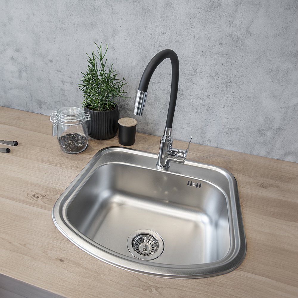Baterie kuchenne serii Elza marki Kuchinox z elastyczną wylewką należą do rozwiązań efektownych wizualnie, a jednocześnie wyróżniają się dużą praktycznością podczas codziennego użytkowania w kuchni. Seria posiada elastyczne wylewki oraz dostępna jest w wersji sztorcowej stojącej i ściennej. Uniwersalna kolorystyka sprawia, że z łatwością można dobrać ją do każdej stylistyki kuchni, zarówno tej nowoczesnej, jak i utrzymanej w klasycznym tonie. Baterie posiadają chromowe elementy, dzięki czemu możemy dobrać baterię do stalowego zlewozmywaka. Natomiast elastyczne wylewki dostępne są w uniwersalnych kolorach tj. beżowy, szary oraz czarny, dzięki czemu możemy dopasować baterię do zlewozmywaka granitowego. Baterie z elastyczną wylewką łączą w sobie cechy funkcjonalności wraz z estetycznym wyglądem. Największą zaletą elastycznej wylewki jest jej plastyczność, umożliwiająca dowolne jej ustawienie, dzięki czemu możemy dotrzeć do trudnodostępnych miejsc naczyń o nietypowym kształcie. Kolejnym atutem jest wygodne mycie samego zlewu oraz swobodne obmywanie warzyw czy owoców. Baterie stojące Elza dostępne są w dwóch wersjach. Pierwsza opcja wyposażona jest w standardowy aerator, natomiast druga oferuje dwie funkcje strumienia, które można zmieniać za pomocą obrotu aeratora. W ofercie znajdują się również baterie z elastyczną wylewką F, dostępne w modnych kolorach, a także eleganckie, całkowicie czarne zestawy.