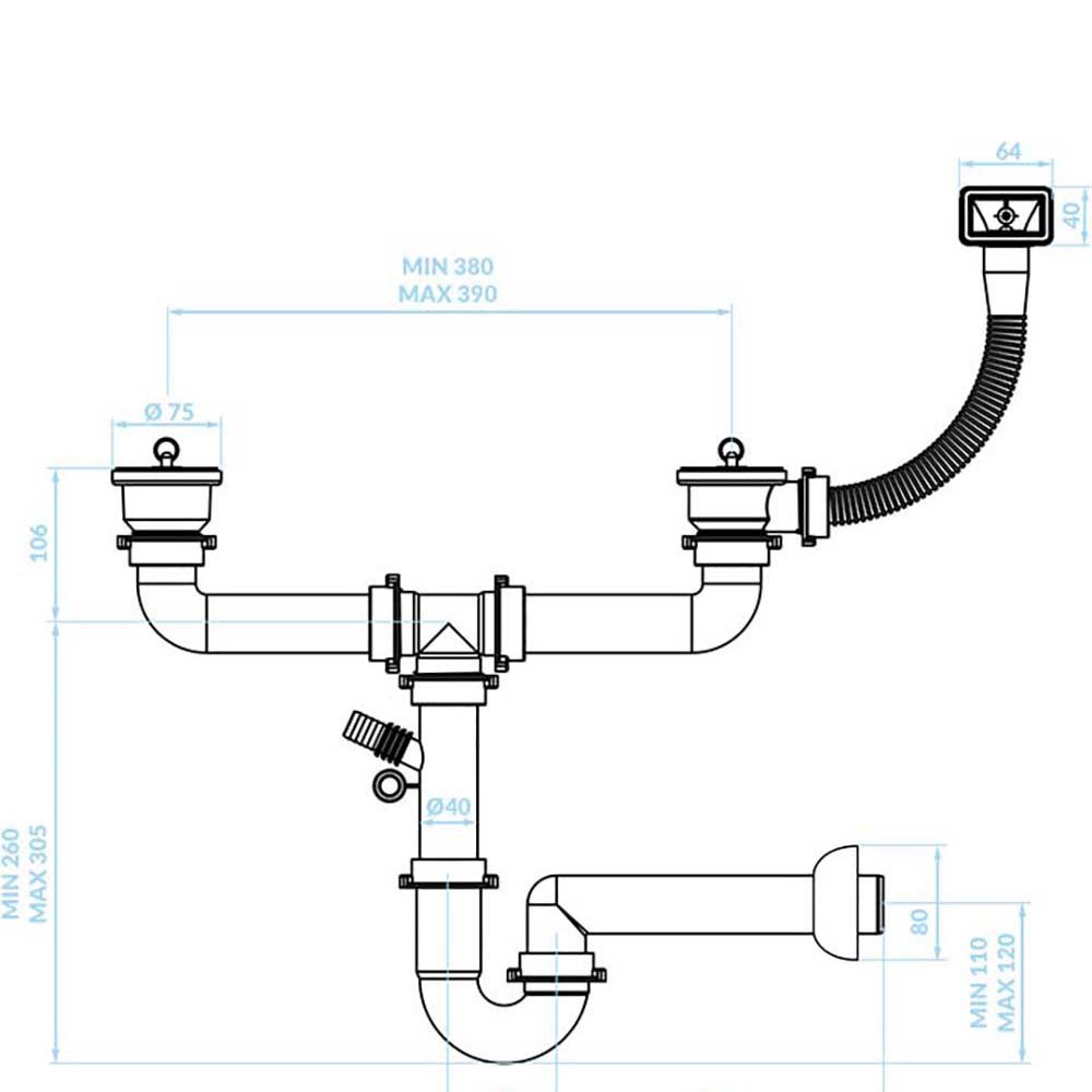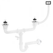 Syfon 2x2" z przelewem do zlewozmywaka 2-komorowego inox
