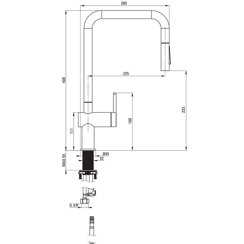 Bateria kuchenna Momi, wykonana z wysokiej jakości stali nierdzewnej, charakteryzuje się elegancką, prostokątną wylewką, która nadaje jej nowoczesny wygląd. Wbudowany aerator skutecznie napowietrza strumień wody, co przekłada się na mniejsze zużycie. Wyciągana wylewka gwarantuje komfortowe użytkowanie, umożliwiając łatwe operowanie wodą przy różnorodnych pracach w strefie zlewozmywaka. Bateria oferuje również dwa tryby strumienia: napowietrzony, idealny do codziennych zadań, oraz delikatny, deszczowy strumień, świetny do płukania warzyw i owoców. Momi, wykończona w eleganckim, matowym szczotkowanym brązie, stanowi doskonały wybór do nowoczesnych kuchni, idealnie komponując się z nowoczesnymi wnętrzami.