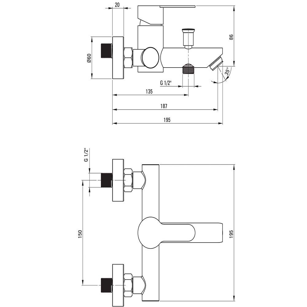 Bateria wannowa ścienna LUPO stal szczotkowana