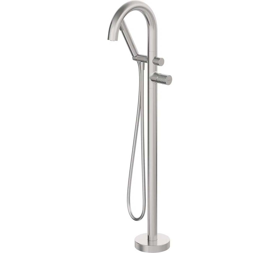 Bateria wannowa wolnostojąca SILIA HEXA z zestawem prysznicowym stal szczotkowana