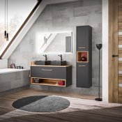 Kolekcja Borneo to linia nowoczesnych i funkcjonalnych mebli łazienkowych, doskonale łącząca ciemno szare korpusy z drewnopodobnymi wstawkami. W kolekcji dostępne są szafki pod umywalkę w czterech rozmiarach. Na serię składają się również szafka wysoka, szafka niska z koszem na pranie oraz szafki lustrzane w rozmiarach zgodnych z szafkami pod umywalkowymi. Drzwiczki i szuflady wyposażone są w system cichego domykania oraz drewniane uchwyty. Borneo to kolekcja mebli łazienkowych o niepowtarzalnym wzornictwie i świetnie dobranej kolorystyce.