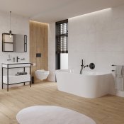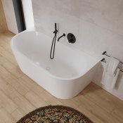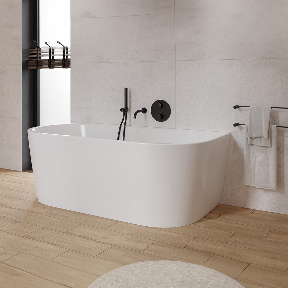 Wannę wolnostojącą CREA z łatwością możemy zamontować przy ścianie i wyposażyć w baterię zarówno nawannową, jak i ścienną. Akryl, z którego wykonany jest produkt, doskonale utrzymuje temperaturę kąpieli, a także oferuje ciepłą i przyjemną w dotyku powierzchnię. Wszystko przy zachowaniu niskiej wagi, dodatku regulowanego stelaża i syfonu z korkiem klik-klak o wykończeniu chrom w komplecie.