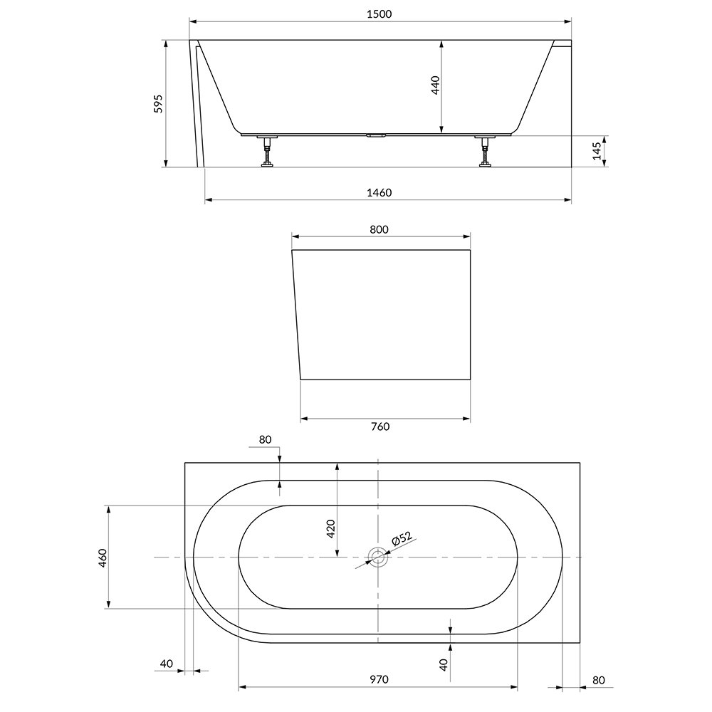 Wanna wolnostojąca narożna CREA prawa 150x80 cm biała