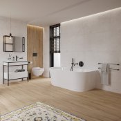 Dzięki wyjątkowej konstrukcji modelu wanny przyściennej z kolekcji CREA, umożliwiającej ustawienie produktu tuż przy ścianie, efektowny styk wanny wolnostojącej jest w zasięgu właścicieli mniejszych łazienek. Wanna posiada powierzchnie odkładcze wzdłuż ściany, które można wykorzystać jako praktyczne miejsce do przechowywania akcesoriów kąpielowych, co czyni z modelu wanny przyściennej od Cersanit doskonałą propozycję łączącą funkcjonalność z nietuzinkowym stylem.