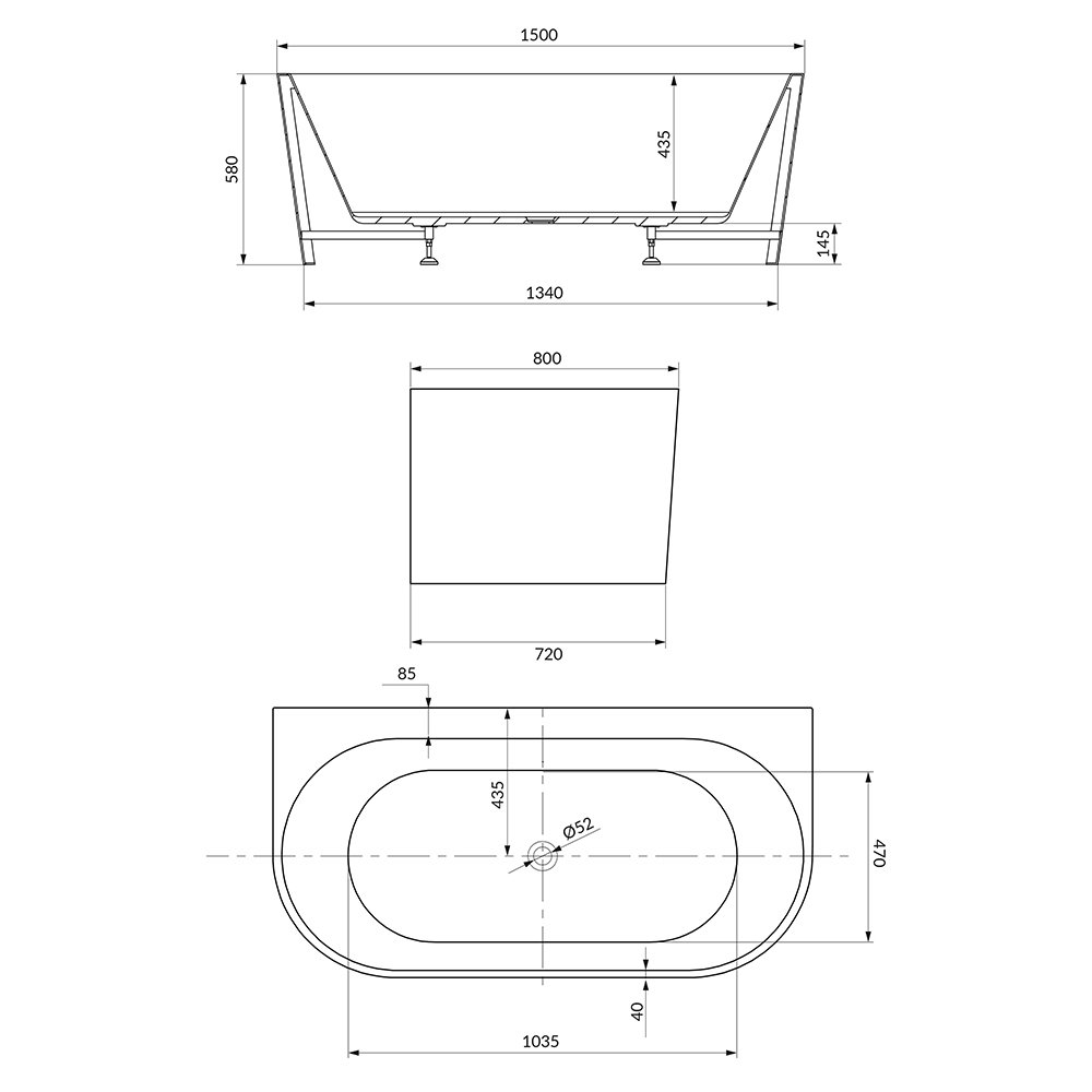 Wanna wolnostojąca przyścienna CREA 150x80 cm biała