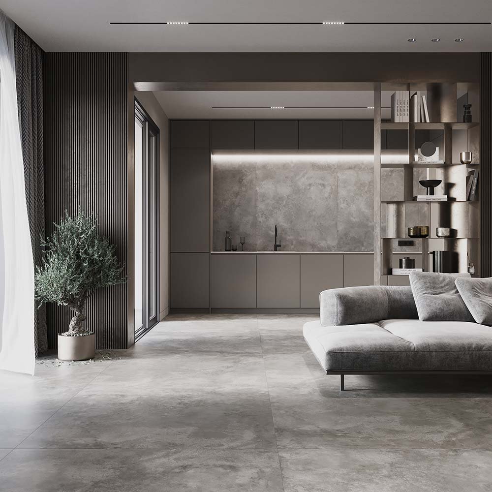 Gres szkliwiony WINTER SHADOW grey mat 119,8x119,8. Gatunek pierwszy. Do stosowania na podłogach i ścianach, wewnątrz i na zewnątrz budynków, z wyłączeniem miejsc o bardzo dużym natężeniu ruchu.