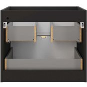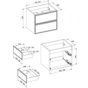 Dwie szuflady oferują dużo miejsca do przechowywania akcesoriów łazienkowych, utrzymując porządek. Warto zwrócić uwagę, że szafka pod umywalkę w tej kolekcji ma wysokość 50 cm, co wprowadza lekkość i sprawia, że wnętrze wydaje się bardziej przestronne, w odróżnieniu od standardowych modeli o wysokości 57 cm. System cichego domykania szuflad zapewnia dodatkowy komfort użytkowania, a zastosowanie płyty MDF oraz płyty laminowanej gwarantuje solidność oraz estetyczny wygląd na lata.