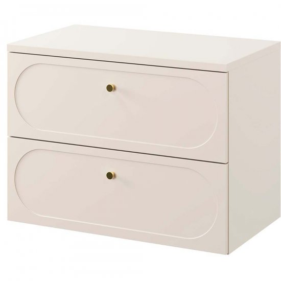 Szafka pod umywalkę 80cm z dwiema szufladami z kolekcji Donna Sand to nowoczesna reinterpretacja klasycznego stylu, inspirowana subtelnością. Delikatne fronty z obłym frezowaniem nadają kolekcji wyjątkowy charakter i lekkość. Użyty w kolekcji dekor Beż Piaskowy to wariacja na temat kolorów kaszmirowych, które zdominowały wnętrzarskie trendy, wprowadzając do wnętrz ciepło i harmonię. Całość dopełniają złote, metalowe gałki, podkreślające elegancję i nadające szlachetnego wykończenia.