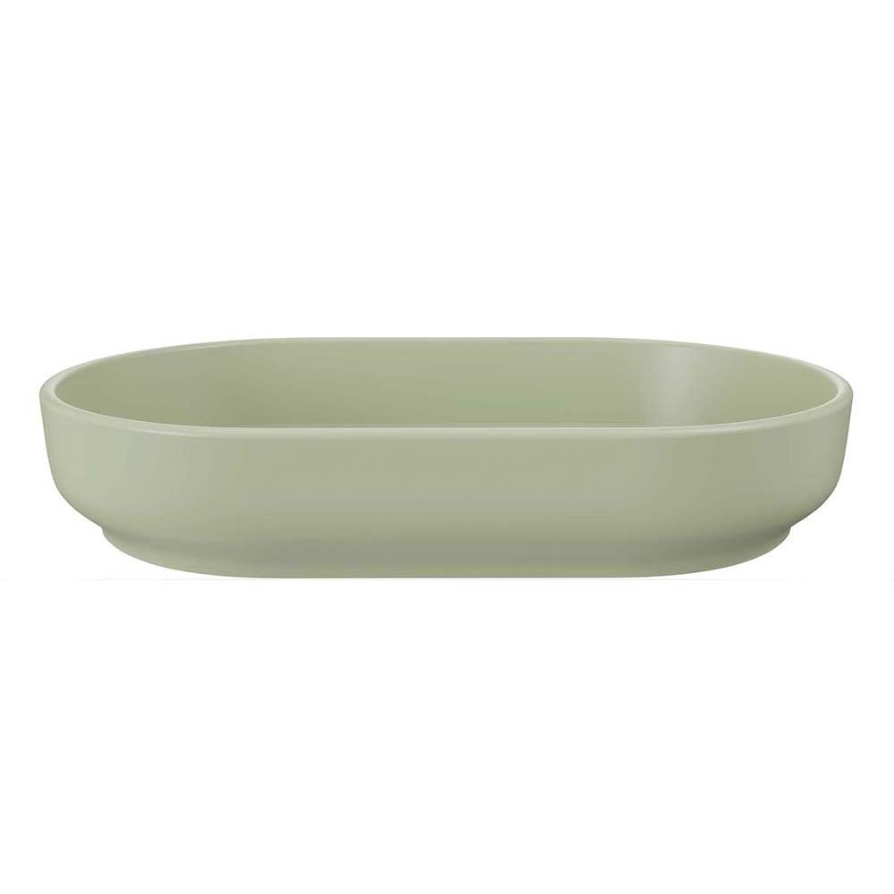 Umywalka nablatowa River 2 w dekorze Olive Green to połączenie prostej formy i matowego wykończenia. Owalny kształt i subtelna oliwkowa zieleń nadają jej naturalny, lekko energetyzujący charakter, który świetnie współgra zarówno z jasnymi wnętrzami, jak i bardziej kontrastowymi aranżacjami. Wymiary 55 × 35 cm i wysokość 12 cm sprawiają, że to praktyczny wybór do wielu łazienek.
