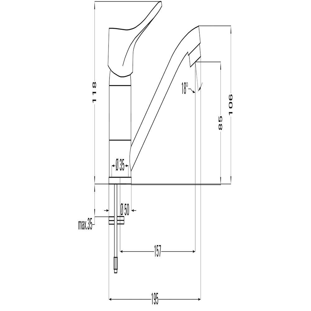 - Zasięg wylewki: 157 mm