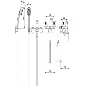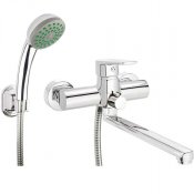 Bateria umywalkowo-wannowa ścienna TUBO z zestawem prysznicowym chrom