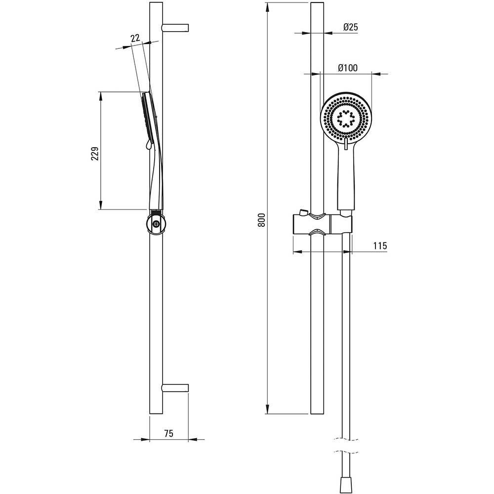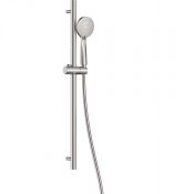 W skład zestawu Arnika wchodzi słuchawka prysznicowa, wąż natryskowy oraz drążek. Słuchawka wyposażona jest w 3 strumienie: deszczowy, mieszany, hydromasaż oraz system anti-calc, który ułatwia czyszczenie produktu. Stalowy drążek posiada uchwyt z regulacją kąta nachylenia słuchawki, dzięki czemu możesz ją dowolnie ustawić. Natomiast wąż nie skręca się, dzięki zastosowaniu systemu anti-twist. Wszystkie elementy wykończone są w efektownym kolorze stali szczotkowanej. Należy go podłączyć do baterii wannowej lub natryskowej.