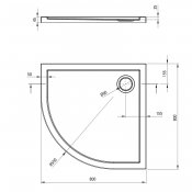 Brodzik półokrągły PRIZMA akrylowy 80 cm biały