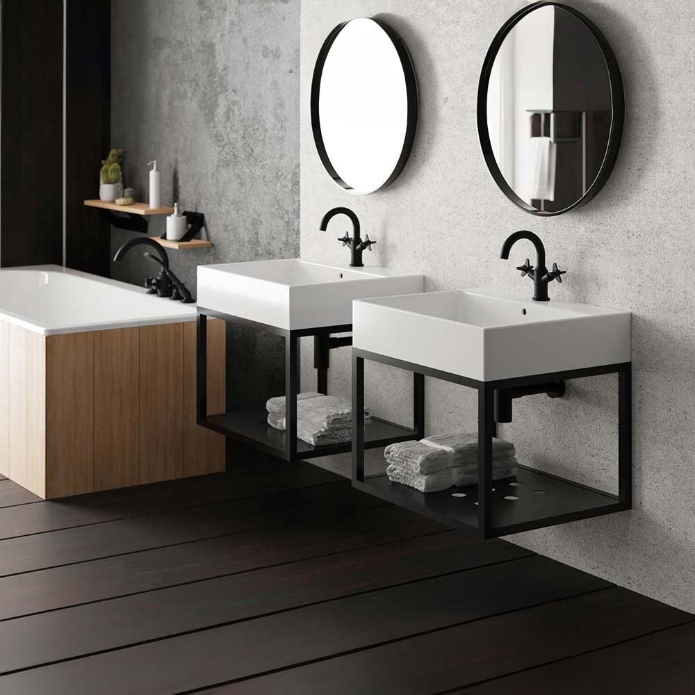 Konsola łazienkowa wisząca TEMISTO z umywalką 60x50 nero,biały