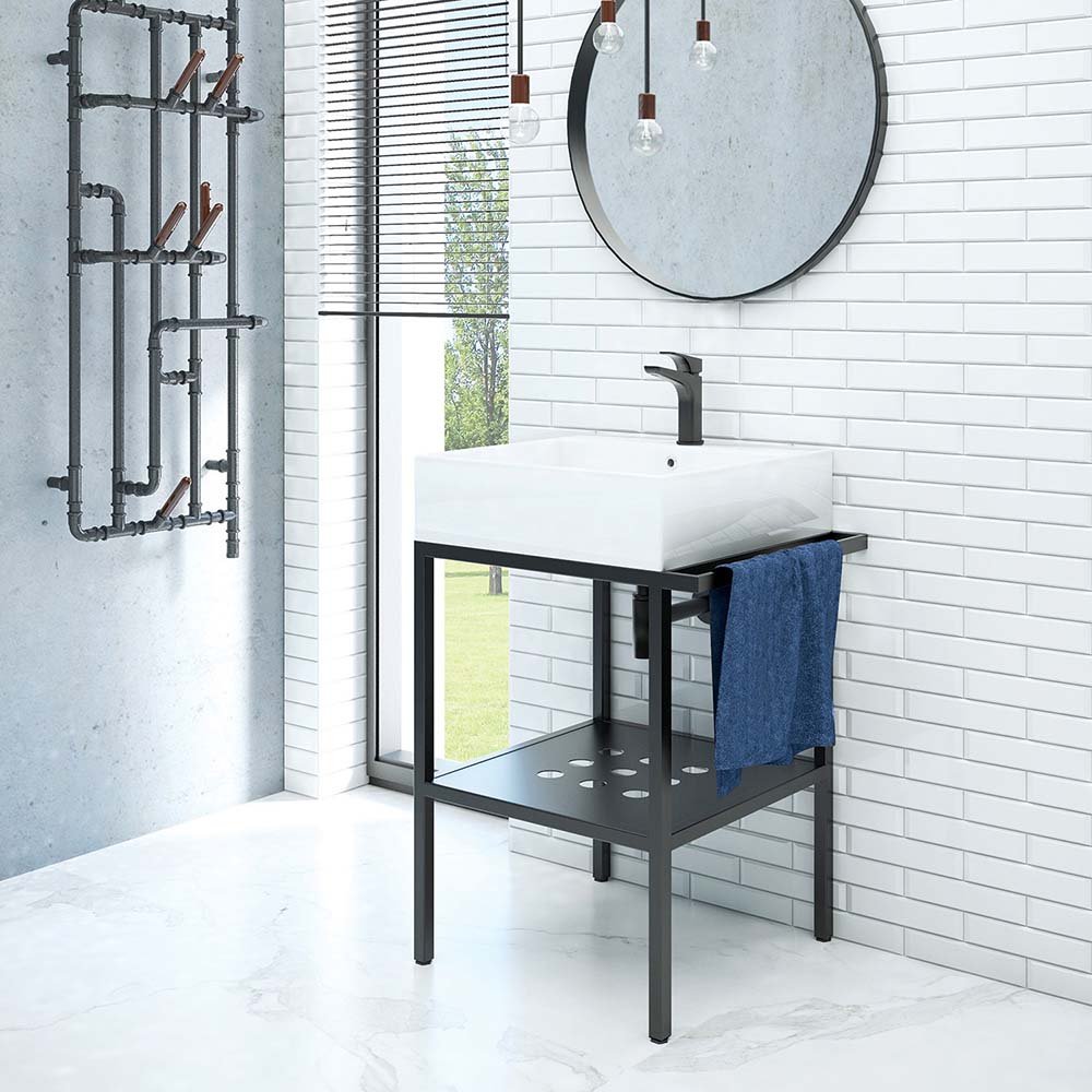 Konsola łazienkowa stojąca TEMISTO z umywalką 66,5x50 nero, biały