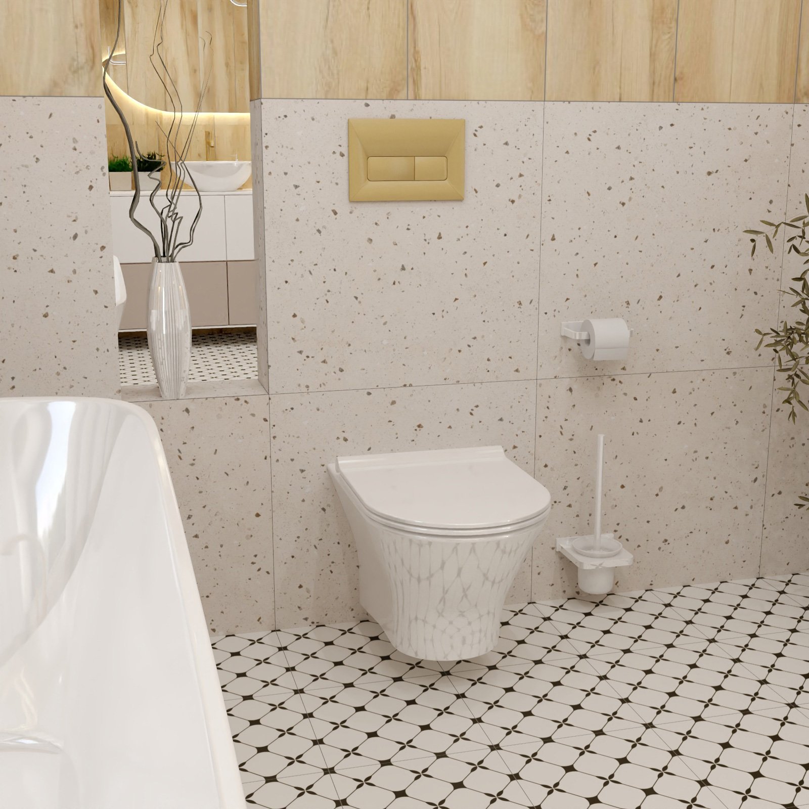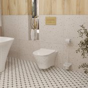 Przycisk spłukujący wykonany został z wytrzymałej stali nierdzewnej i zakończony eleganckim wykończeniem w kolorze złota szczotkowanego. To doskonałe rozwiązanie dla osób ceniących spójność i estetykę w swojej łazience. Jego design harmonizuje z armaturą i dodatkami w tym samym kolorze, dodając łazience niepowtarzalnego uroki i elegancji. Ultra płaska konstrukcja przycisku gwarantuje, że idealnie przylega on do ściany, co nie tylko podkreśla nowoczesny charakter łazienki, ale także ułatwia utrzymanie czystości i porządku. Innym walorem przycisku jest funkcjonalność dwóch opcji spłukiwania, które pozwalają użytkownikowi na świadome zarządzanie zużyciem wody. Produkt przeznaczony jest do montażu przy stelażach podtynkowych.