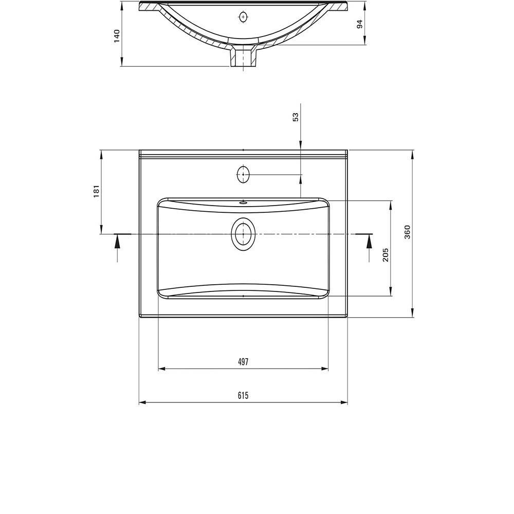Umywalka ceramiczna TUBO wpuszczana w blat z miejscem na baterię 61,5x36 biała