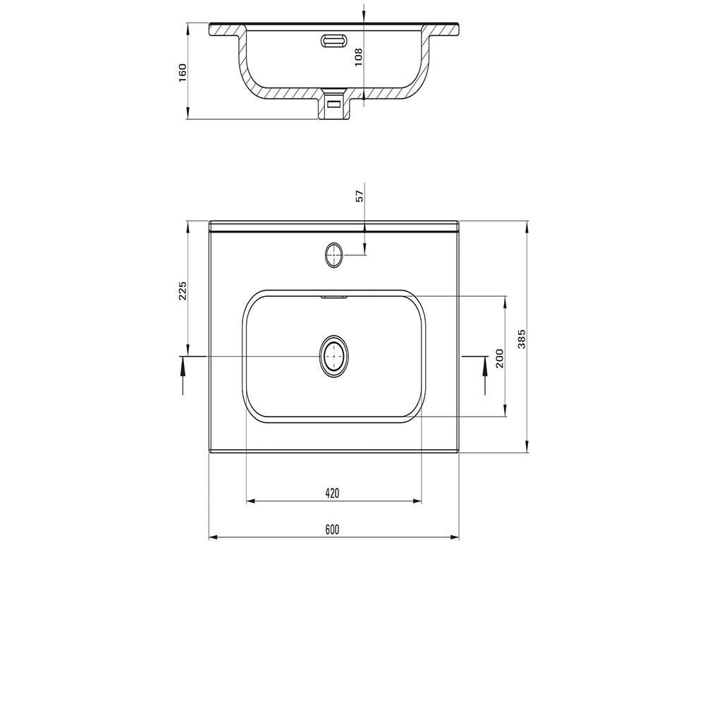 Umywalka ceramiczna TUBO wpuszczana w blat z miejscem na baterię 60x38,5 biała