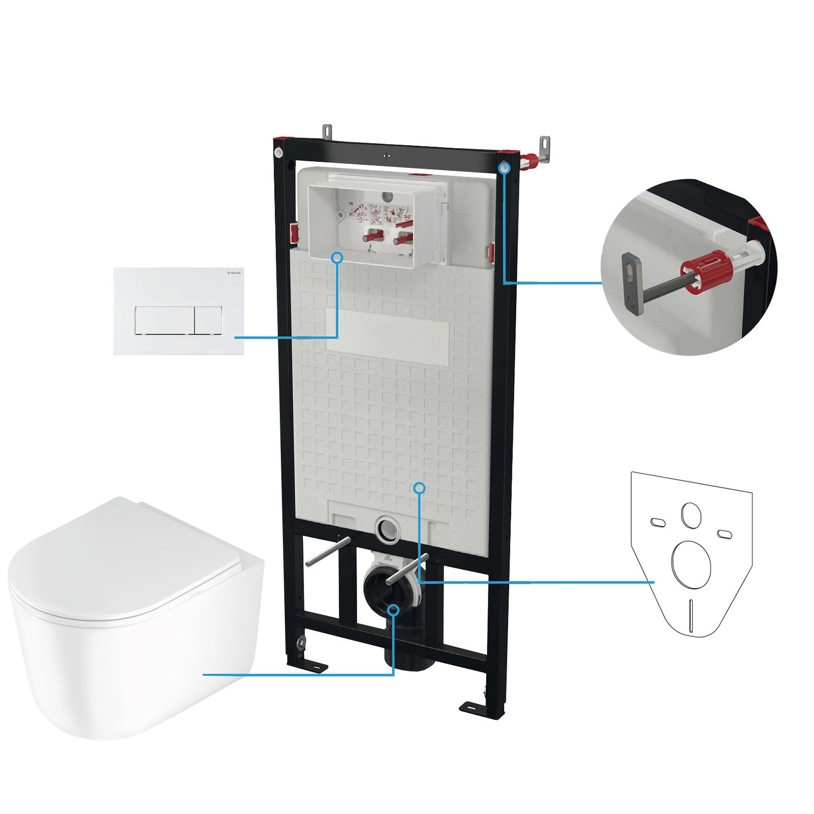 Zestaw WC podtynkowy Jasmin to połączenie nowoczesności i funkcjonalność. Stelaż jest stabilny i wytrzymały, dzięki stalowej ramie, zapewniając niezawodność przez długie lata użytkowania. Biały przycisk sterujący podkreśla estetykę przestrzeni. Brak zakamarków w misce bezkołnierzowej znacząco ułatwia mycie, eliminując problem gromadzenia się zanieczyszczeń. Dodatkowo, innowacyjny, wirowy system gwarantuje efektywne spłukanie wnętrza muszli, umożliwiając zachowanie nieskazitelnej czystości i świeżości toalety. Deska wolnoopadająca to komfort i bezpieczeństwo użytkowania. Całość prezentuje się wyjątkowo estetycznie, doskonale komponując się z różnymi stylami wnętrz łazienkowych.