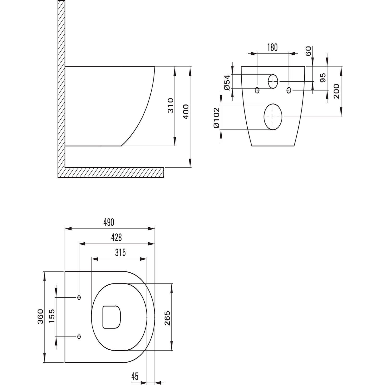 - Miska bezkołnierzowa ułatwiająca utrzymanie czystości i higieny