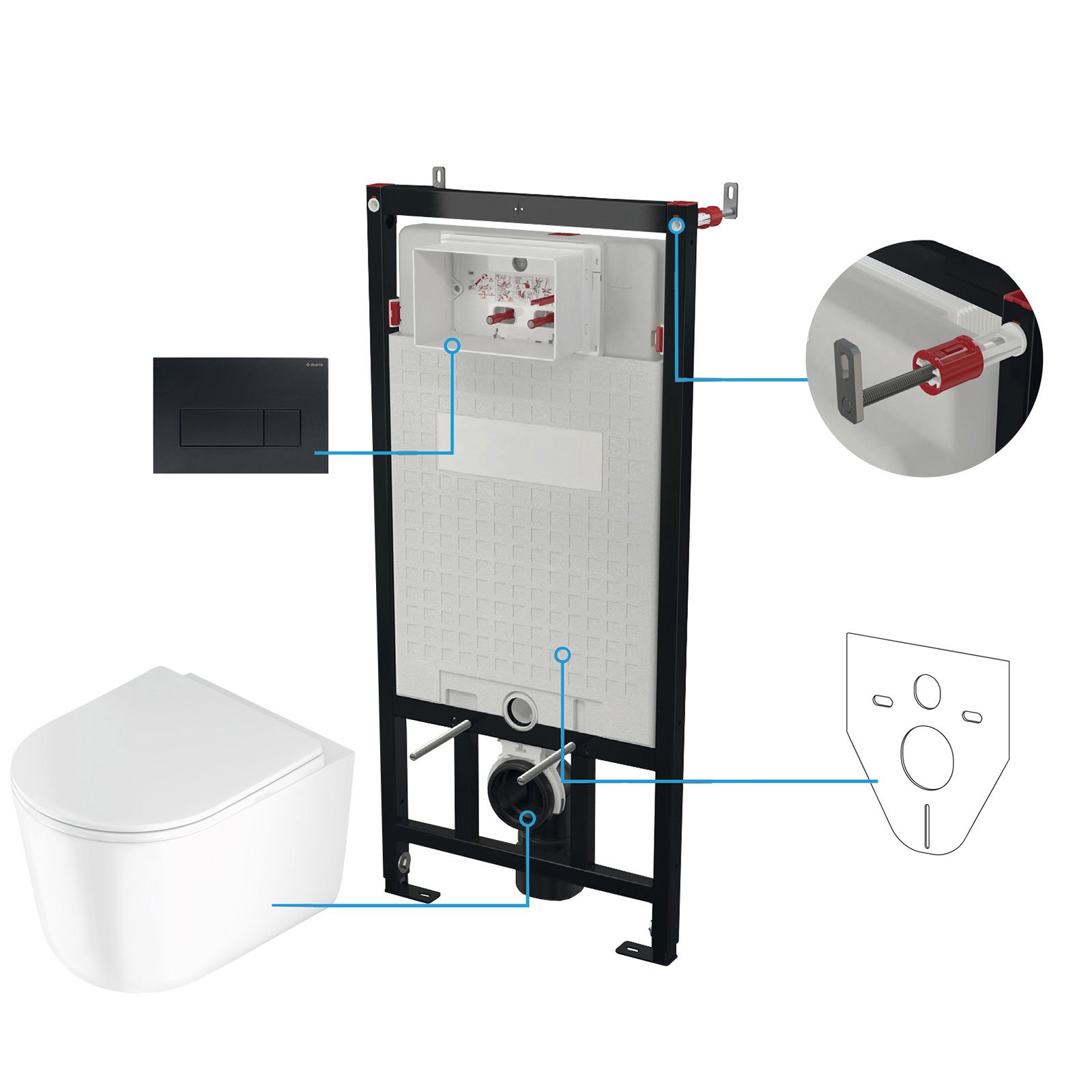 Stelaż podtynkowy mechaniczny, miska wirowa JAŚMIN biała, przycisk nero