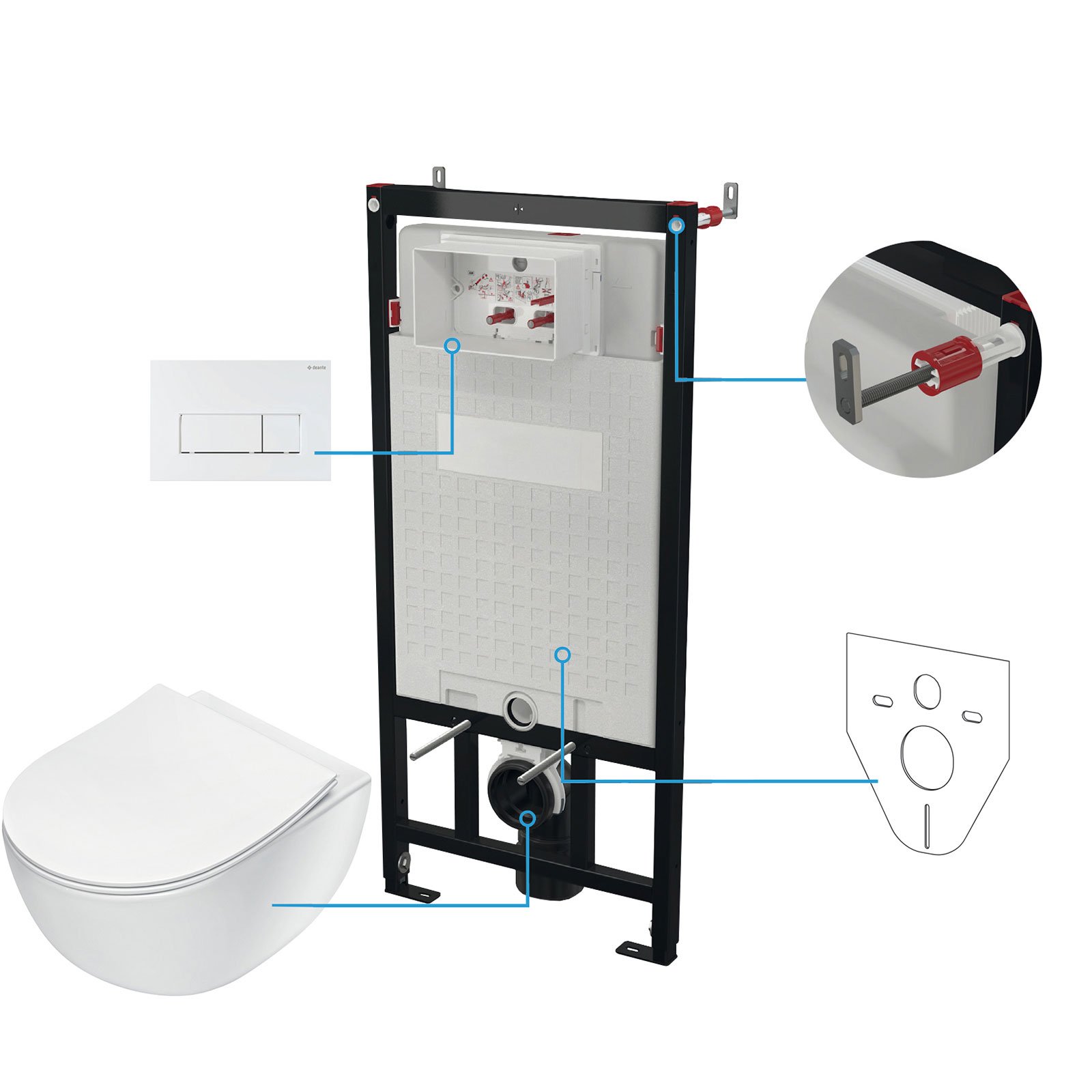 Stelaż podtynkowy mechaniczny, miska bezkołnierzowa PEONIA biała, przycisk biały