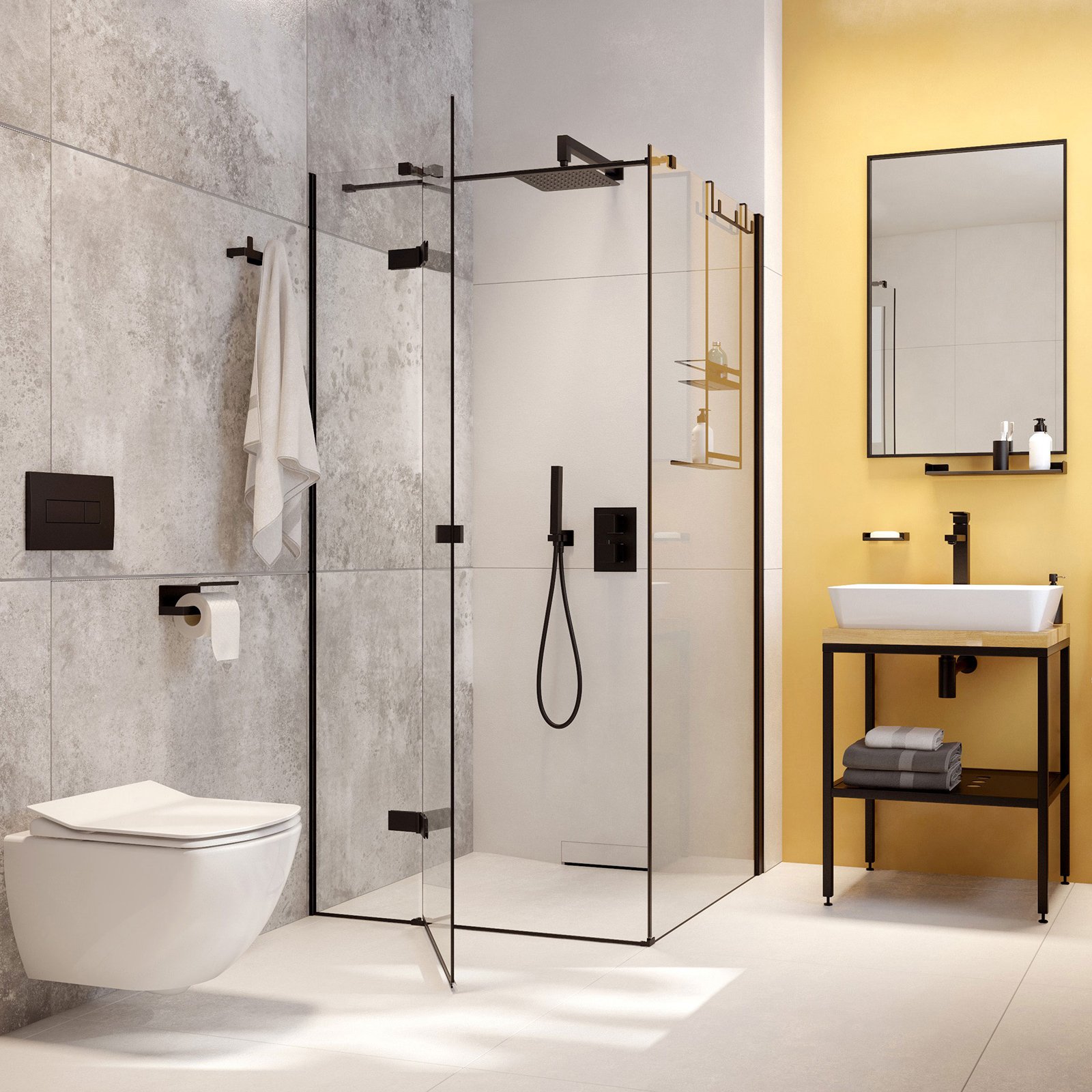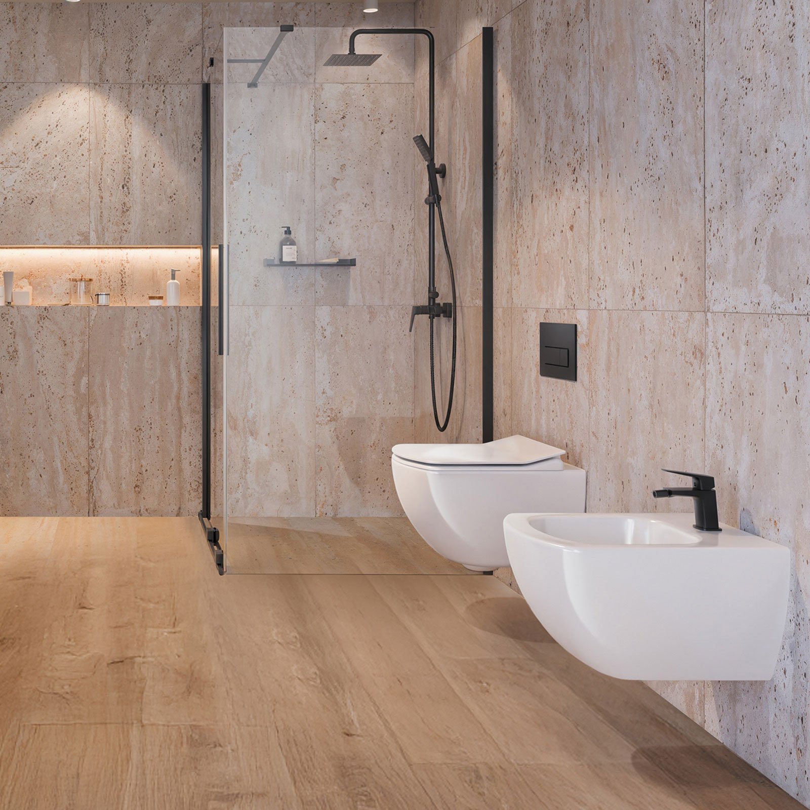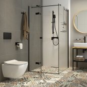 Kompletny, przeznaczony do montażu podtynkowego zestaw 6w1 z miską ustępową bezkołnierzową wiszącą z kolekcji Anemon Zero, pozwoli Ci w szybki i łatwy w montażu sposób, zaaranżować nowoczesną, estetyczną i wygodną do utrzymania w czystości toaletę. Geometryczna kolekcja Anemon Nero idealnie sprawdzi się w łazienkach urządzonych w minimalistycznym stylu, w tym także tych o niewielkim metrażu. Ceramiczna, podwieszana miska WC z cicho opadającą, cienką deską Slim oraz pasującym przyciskiem spłukującym w eleganckim wykończeniu w głębokim, czarnym kolorze, charakteryzuje się brakiem standardowego kołnierza bez trudnych do utrzymania w czystości kątów, rantów i zakamarków. Design miski nie tylko skraca czas czyszczenia toalety i ilość wykorzystywanych do tego detergentów, ale także sprawia, że do spłukania muszli potrzeba mniej wody, co zmniejsza jej zużycie i jest zgodne z filozofią Proeco marki Deante. Miskę montuje się na ścianie za pomocą znajdującego się w zestawie stelaża podtynkowego.