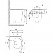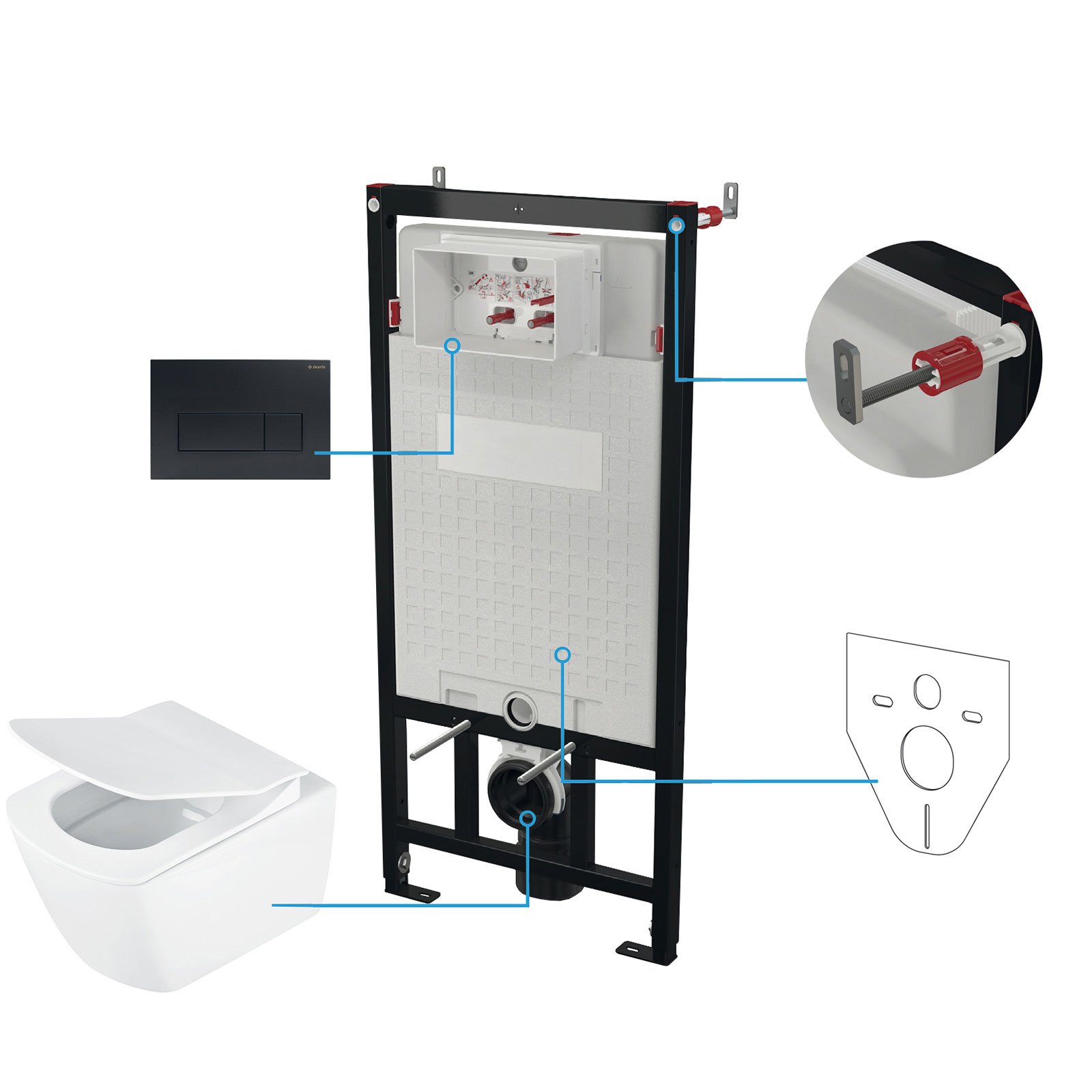 Stelaż podtynkowy mechaniczny, miska bezkołnierzowa ANEMON, przycisk nero