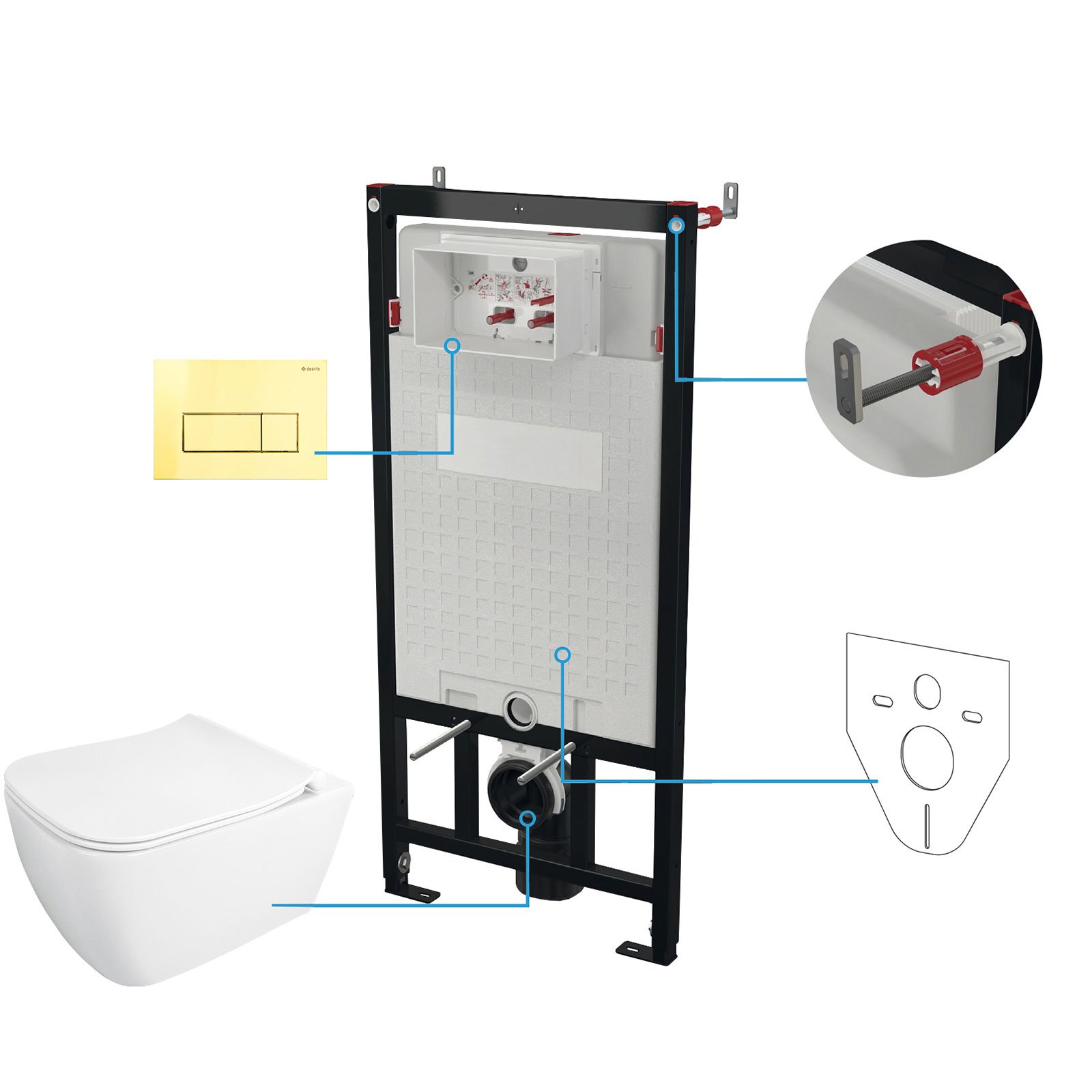 Stelaż podtynkowy mechaniczny, miska bezkołnierzowa HIACYNT NEW, przycisk złoty