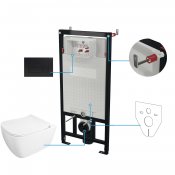 Stelaż podtynkowy mechaniczny, miska bezkołnierzowa HIACYNT NEW, przycisk nero