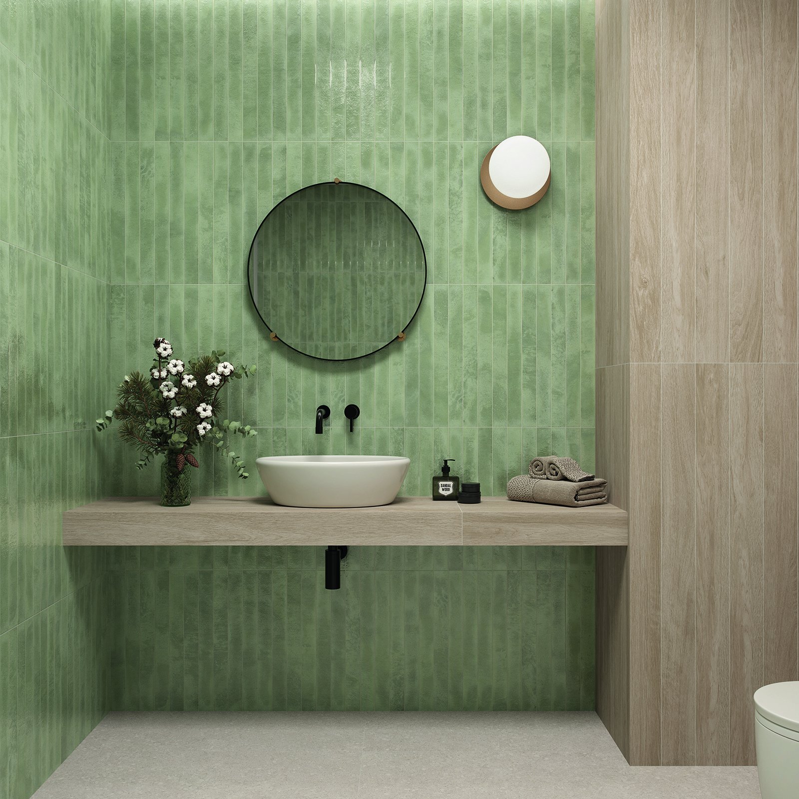 Gres szkliwiony hiszpański MAKALU zielony błyszcząca 5x50. Gatunek pierwszy. Do stosowania na podłogach i ścianach, wewnątrz i na zewnątrz budynków, z wyłączeniem miejsc o bardzo dużym natężeniu ruchu.