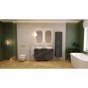 Kolekcja MILOS by Cersanit to kwintesencja klasyki i stylu, stworzona z myślą o miłośnikach eleganckich wnętrz. Idealnie sprawdzi się w przestronnych łazienkach, gdzie wyrafinowany design idzie w parze z estetyką i funkcjonalnością. Złote, srebrne lub czarne akcesoria meblowe, perfekcyjnie komponujące się z frontami w odcieniach czerni, tworzą harmonijną i stylową całość. Każdy detal tej kolekcji podkreśla elegancki charakter wnętrza, dodając mu wyjątkowego uroku. Kolekcja MILOS by Cersanit zachwyca elegancką i ponadczasową kolorystyką, która doskonale komponuje się z nowoczesnymi i klasycznymi aranżacjami wnętrz. Czerń to synonim luksusu i elegancji, nadając wnętrzu charakter i doskonale współgrając z kontrastującymi elementami.