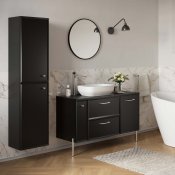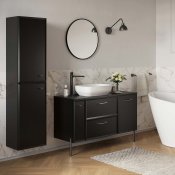 Kolekcja MILOS by Cersanit to kwintesencja klasyki i stylu, stworzona z myślą o miłośnikach eleganckich wnętrz. Idealnie sprawdzi się w przestronnych łazienkach, gdzie wyrafinowany design idzie w parze z estetyką i funkcjonalnością. Złote, srebrne lub czarne akcesoria meblowe, perfekcyjnie komponujące się z frontami w odcieniach czerni, tworzą harmonijną i stylową całość. Każdy detal tej kolekcji podkreśla elegancki charakter wnętrza, dodając mu wyjątkowego uroku. Kolekcja MILOS by Cersanit zachwyca elegancką i ponadczasową kolorystyką, która doskonale komponuje się z nowoczesnymi i klasycznymi aranżacjami wnętrz. Czerń to synonim luksusu i elegancji, nadając wnętrzu charakter i doskonale współgrając z kontrastującymi elementami.