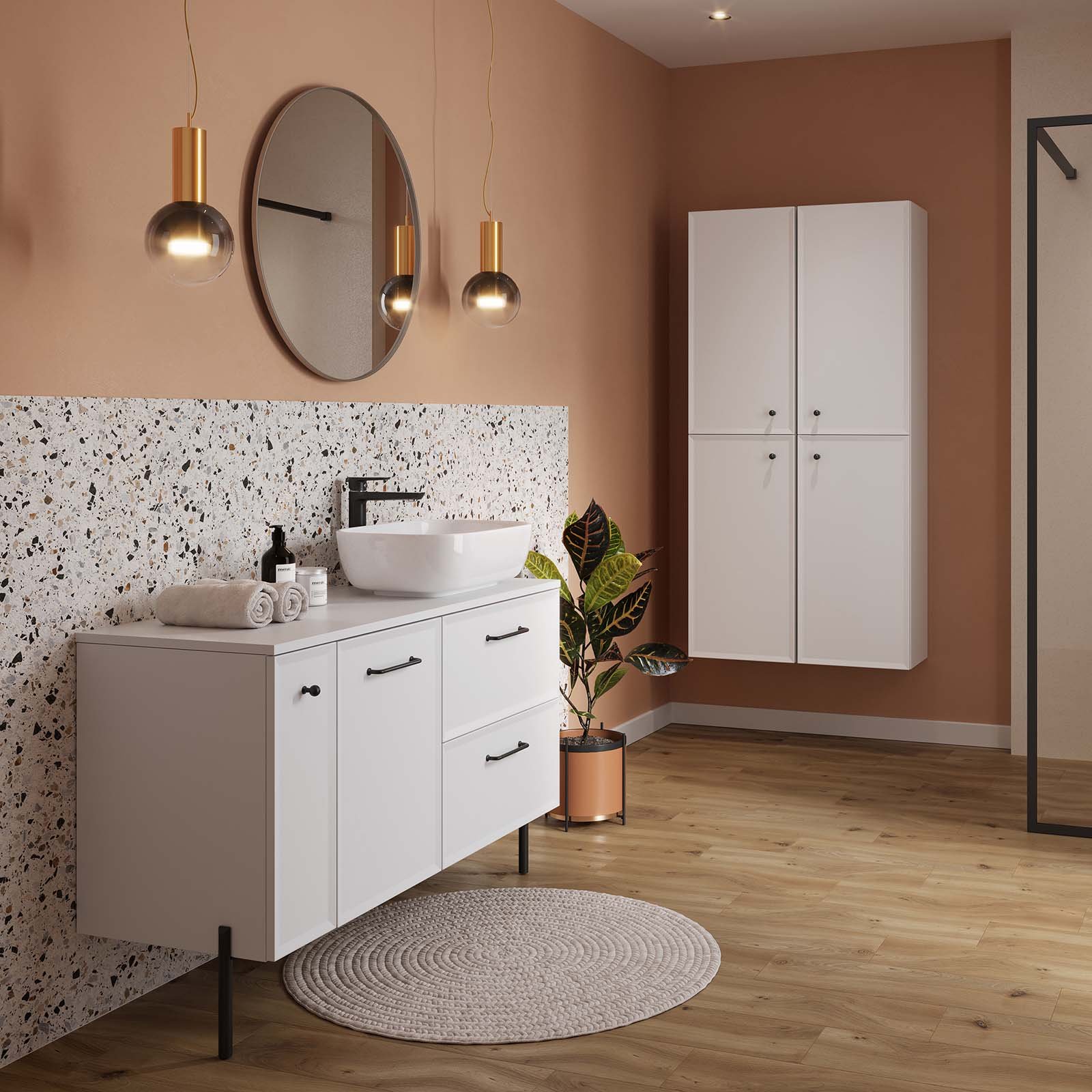 Kolekcja MILOS by Cersanit to kwintesencja klasyki i stylu, stworzona z myślą o miłośnikach eleganckich wnętrz. Idealnie sprawdzi się w przestronnych łazienkach, gdzie wyrafinowany design idzie w parze z estetyką i funkcjonalnością. Złote, srebrne lub czarne akcesoria meblowe, perfekcyjnie komponujące się z frontami w odcieniach bieli, tworzą harmonijną i stylową całość. Każdy detal tej kolekcji podkreśla elegancki charakter wnętrza, dodając mu wyjątkowego uroku. Kolekcja MILOS by Cersanit zachwyca elegancką i ponadczasową kolorystyką, która doskonale komponuje się z nowoczesnymi i klasycznymi aranżacjami wnętrz. Biel dodaje wnętrzu świeżości, optycznie powiększając przestrzeń i wprowadzając harmonię do łazienki.