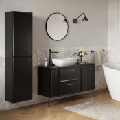 Kolekcja MILOS by Cersanit to kwintesencja klasyki i stylu, stworzona z myślą o miłośnikach eleganckich wnętrz. Idealnie sprawdzi się w przestronnych łazienkach, gdzie wyrafinowany design idzie w parze z estetyką i funkcjonalnością. Złote, srebrne lub czarne akcesoria meblowe, perfekcyjnie komponujące się z frontami w odcieniach czerni, tworzą harmonijną i stylową całość. Każdy detal tej kolekcji podkreśla elegancki charakter wnętrza, dodając mu wyjątkowego uroku. Kolekcja MILOS by Cersanit zachwyca elegancką i ponadczasową kolorystyką, która doskonale komponuje się z nowoczesnymi i klasycznymi aranżacjami wnętrz. Czerń to synonim luksusu i elegancji, nadając wnętrzu charakter i doskonale współgrając z kontrastującymi elementami.