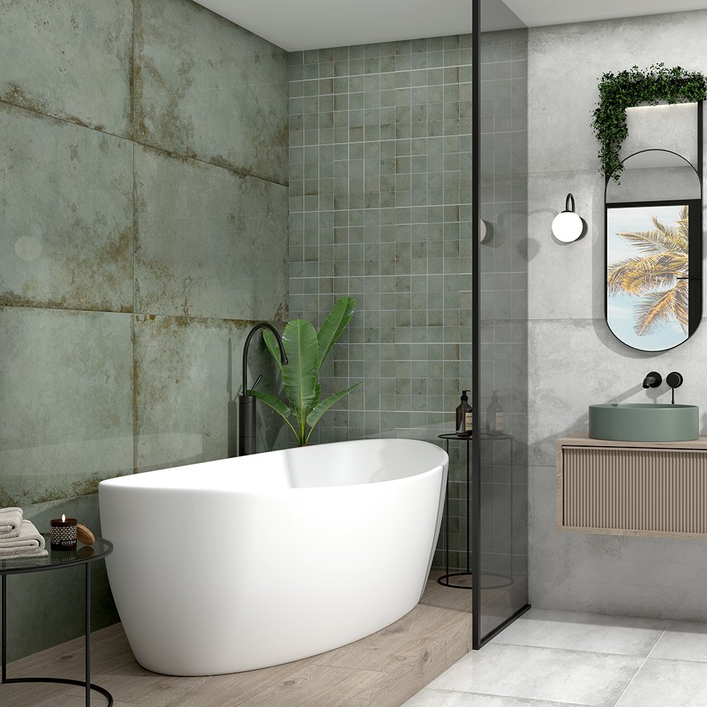 Gres szkliwiony hiszpański ALLOY zielony mat 60x120. Gatunek pierwszy. Do stosowania na podłogach i ścianach, wewnątrz i na zewnątrz budynków, z wyłączeniem miejsc o bardzo dużym natężeniu ruchu.