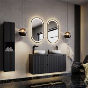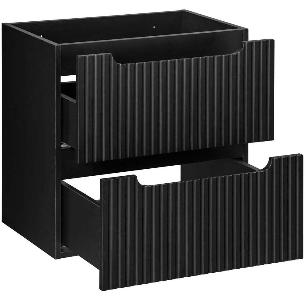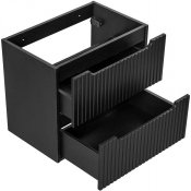 Kolekcja NOVA BLACK to zestawienie klasycznych brył z ryflowanymi frontami wykonanymi z płyty MDF. Zestawy meblowe pasują zarówno do klasycznych, jak i nowoczesnych wnętrz. Przestronne półki i szafki pozwolą utrzymać ład i porządek w łazience.