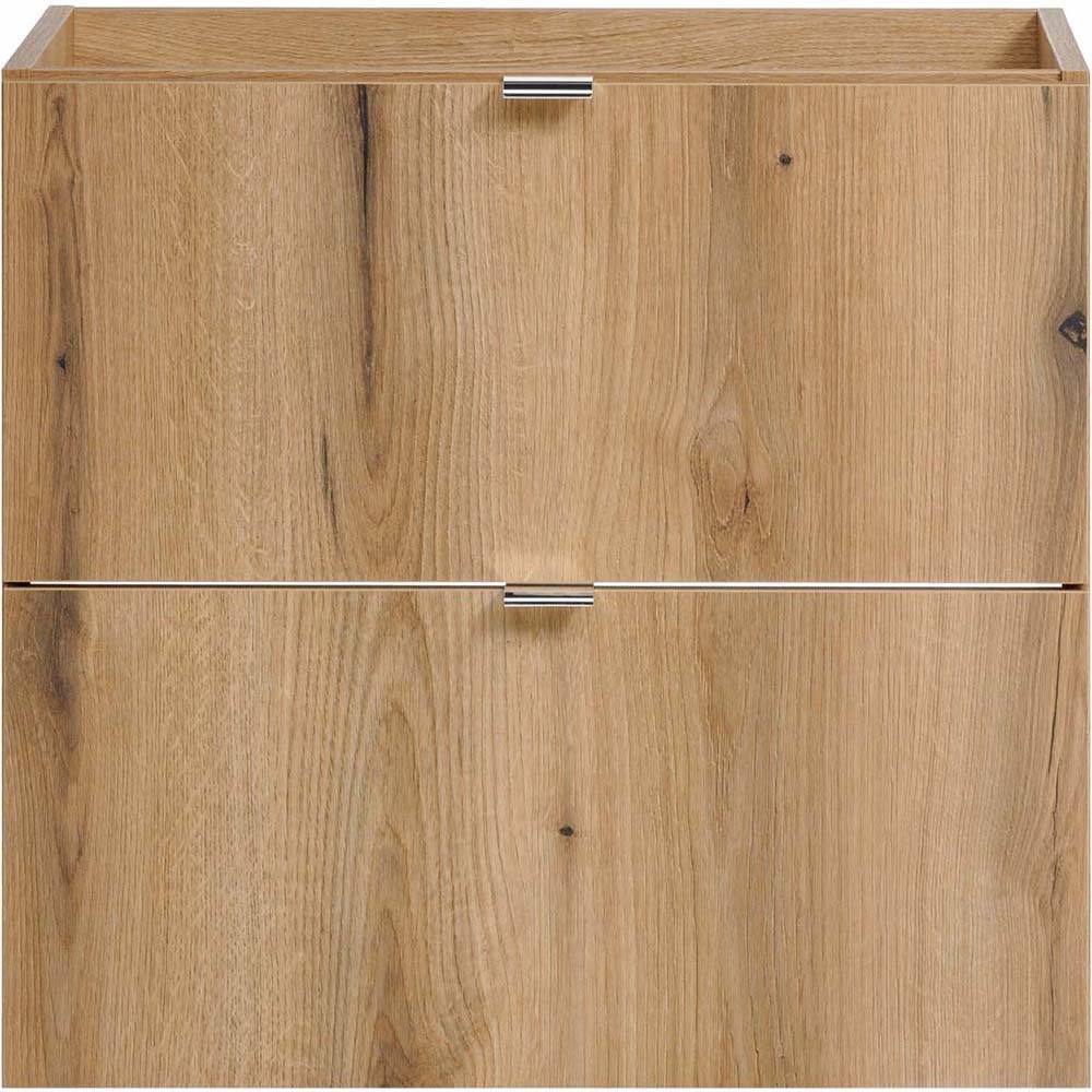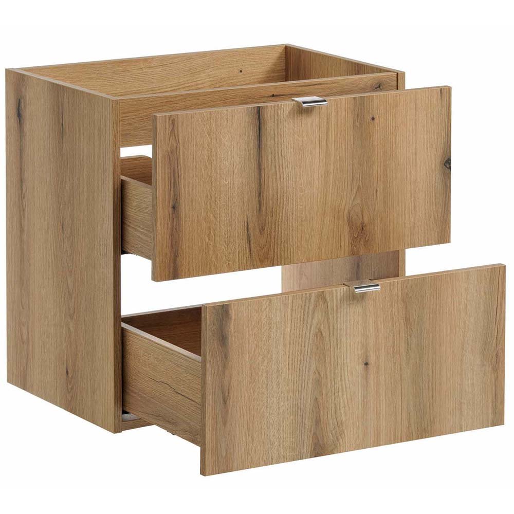 Szafka pod umywalkę 60 cm z dwiema szufladami z kolekcji Nova Oak to doskonały wybór dla miłośników prostoty i klasyki. Gładkie, minimalistyczne fronty, wykończone w dekorze dębu Coast Evoke, wprowadzają do wnętrza ciepły, naturalny akcent. Aluminiowe uchwyty w chromowanym połysku idealnie komponują się z całością, podkreślając nowoczesny charakter kolekcji.