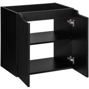 Kolekcja NOVA BLACK to zestawienie klasycznych brył z ryflowanymi frontami wykonanymi z płyty MDF. Zestawy meblowe pasują zarówno do klasycznych, jak i nowoczesnych wnętrz. Przestronne półki i szafki pozwolą utrzymać ład i porządek w łazience.