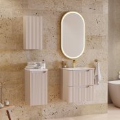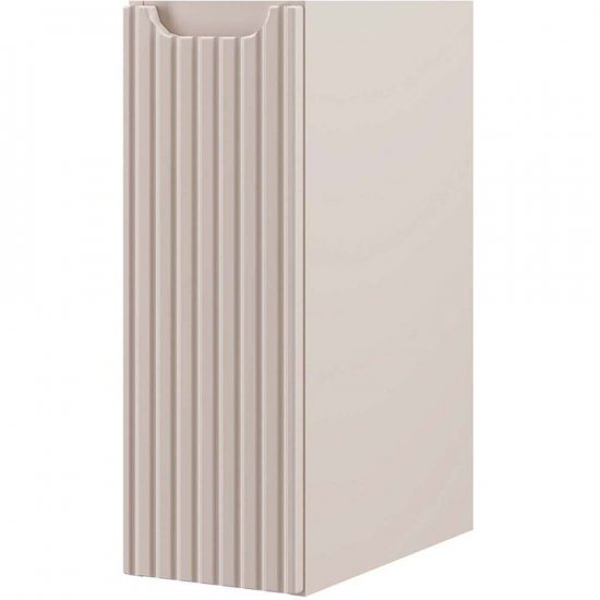 Szafka pod blat o szerokości 20 cm z kolekcji Nova Cashmere łączy harmonijny, minimalistyczny design z funkcjonalnością, inspirowaną codziennymi potrzebami i trwałymi rozwiązaniami. Pionowe, ryflowane fronty nadają meblom unikalny charakter i optycznie powiększają przestrzeń łazienki, a kaszmirowy kolor dodaje subtelnego ciepła, doskonale komponując się z różnorodnymi aranżacjami wnętrz. Zintegrowane podchwyty nie tylko podkreślają jej styl, ale również wprowadzają spójność wizualną.